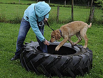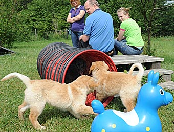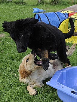 Und schon bald hatten sie den Welpenspielplatz mit seinen Attraktionen fest im Griff.