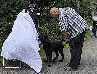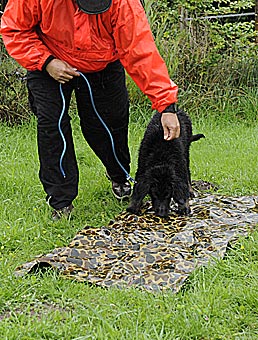 ... noch ein Leckerchen in das Fährtenquadrat werfen ... suchen lassen ...