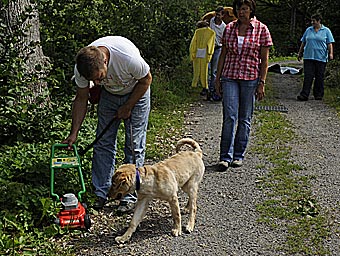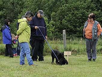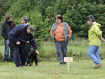Vor der 5. Welpenstunde versuchten sich Hundeführer und Welpen in den ersten Schritten zur Fährtenarbeit
