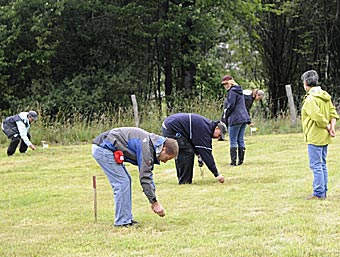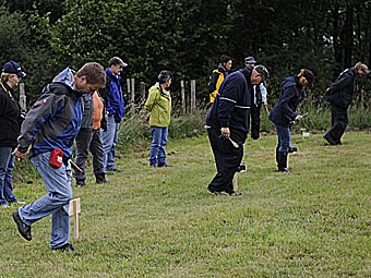 Gemeinsam traten alle ihrem Hund ein Fährtenquadrat ... und verteilten anschließend viele Leckerchen auf dem platt getrampelten Gras