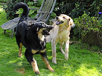 während andere mit den Hunden wieder zum Spielen in den Garten gingen.