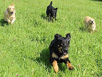 Beim Spazergang konnten die Hunde ausgiebig miteinander toben |