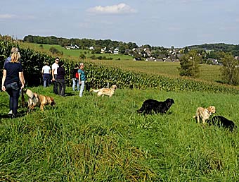 Ob die Hunde die Wiese erkannt haben? Hier haben sie als Welpen schon mal einen Ausflug gemacht.