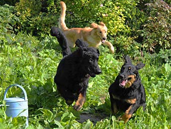 Als unser B-Wurf 6 Monate alt war, haben sich alle bei uns im Garten wieder getroffen.