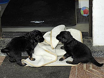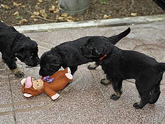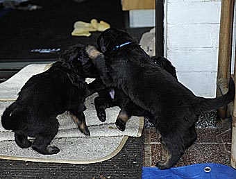 Man sieht jetzt immer wieder Rangeleien zwischen den Welpen |