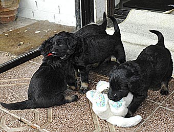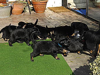 Heute sind die Welpen 4 Wochen alt geworden und wiegen zwischen 2.490 und 3.370 Gramm