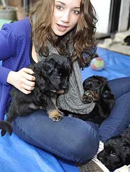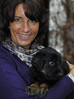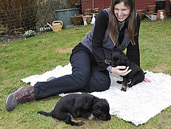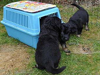 Wenn ich das Welpenzimmer sauber mache, sperre ich die Welpen kurz aus. Damit sind sie aber so gar nicht einverstanden ...