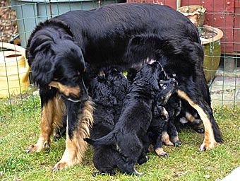 Heute sind die Welpen 5 Wochen alt geworden und wiegen zwischen 3.300 und 4.100 Gramm