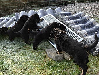 Die Attraktion des Tages: der allererste Blättermagen. Die Welpen waren begeistert!