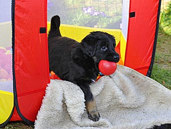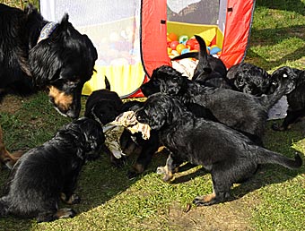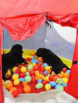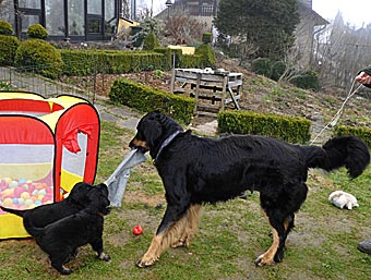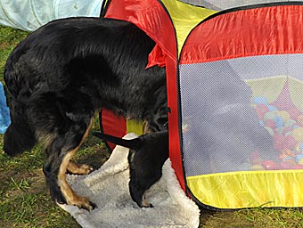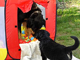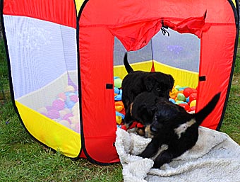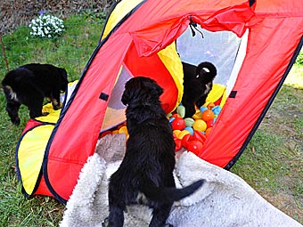 Wie lange mag das Zelt dem Welpenansturm wohl standhalten?
