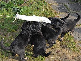 Anschließend habe ich den Sauger stehen gelassen, damit die Welpen ihn näher untersuchen können.