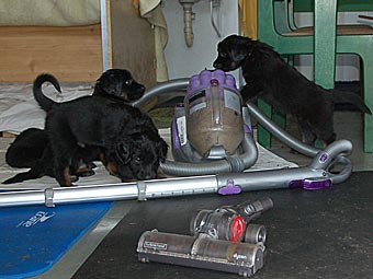 Im Welpenzimmer habe ich heute gesaugt, während Welpen darin waren.
