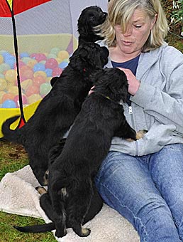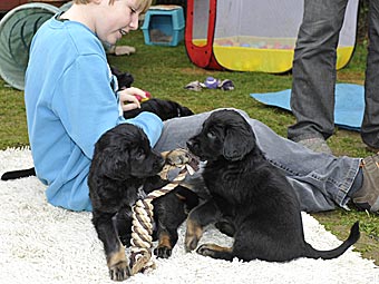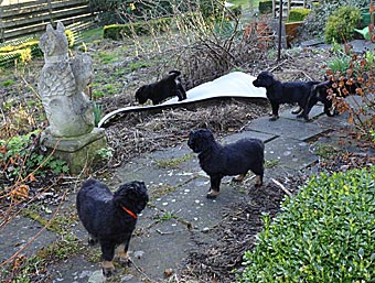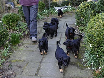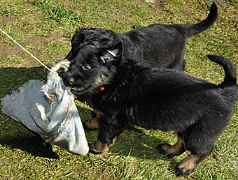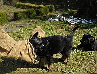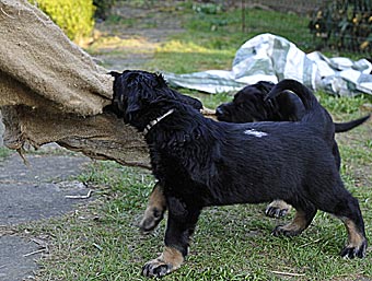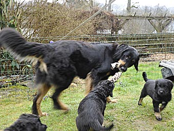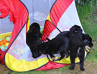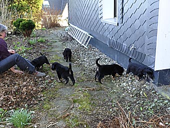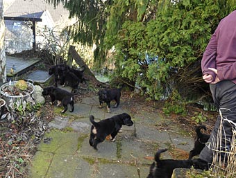 Dann ging es den ganzen Weg wieder zurück zum Welpenauslauf, ... ... wo gleich wieder gespielt wurde. |