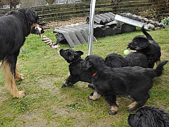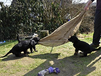Dann wurde mit Mama gespielt und um den Lappen gekämpft ...
