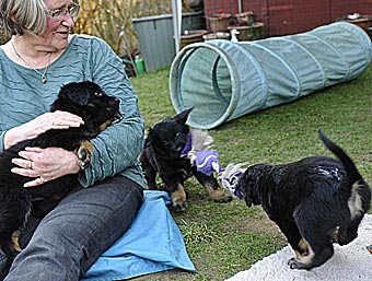Da die Welpen inzwischen bei ihren Rangeleien immer wieder ihre Halsbänder verlieren,