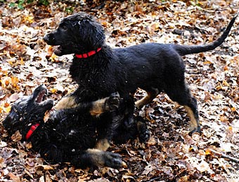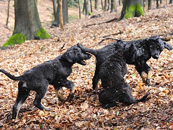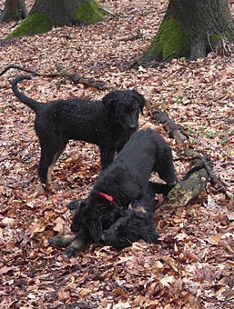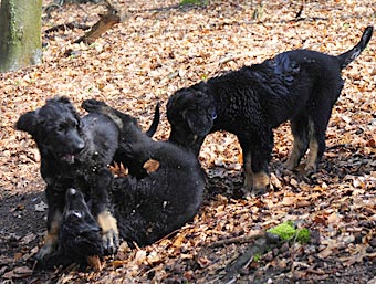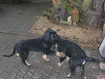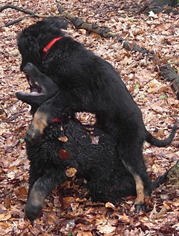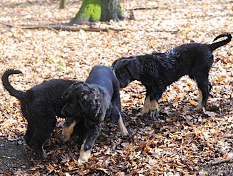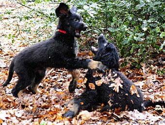 Gemeinsam tobten sie im angrenzenden Wald neben dem Hundeplatz.