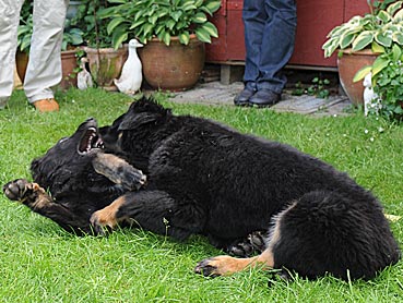 Ende Juli besuchte Faro uns wieder - diesmal allerdings nach dem Junghunde-Training auf dem Hundeplatz in Gummersbach Captain Faro, Cyber und Chili sind fast 6 Monate alt. |