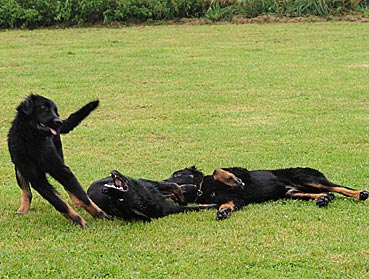 Dann wurde zu Dritt weiter getollt. Es war schön, dem harmonischen Spiel der Hunde zuzuschauen.