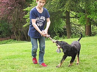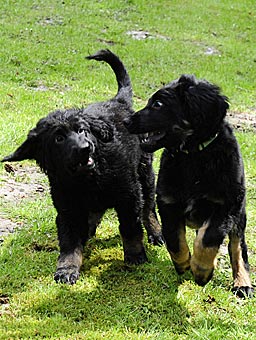 Carlos liebt Kinder und tobt sehr gerne mit. Manchmal muss man ihn allerdings bei fremden Kindern doch bremsen.