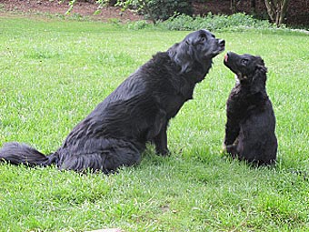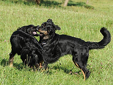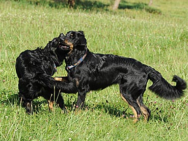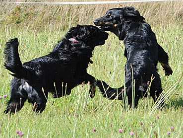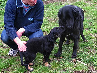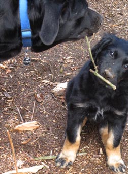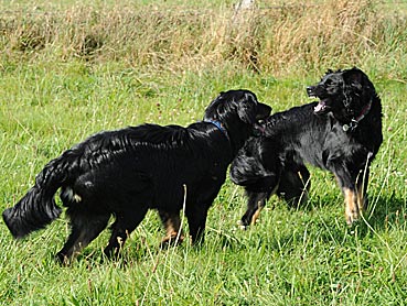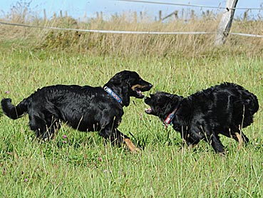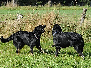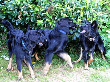 Dann kam Walli (Dark Angel vom Drachentöter), dazu - da brauchte er doch etwas Schutz von Herrchen ... aber bald danach ging es schon viel besser mit den Annäherungsversuchen.