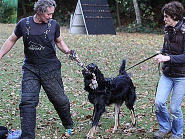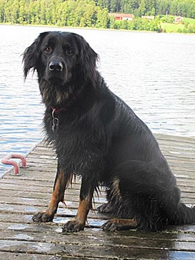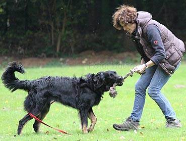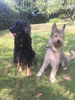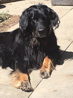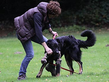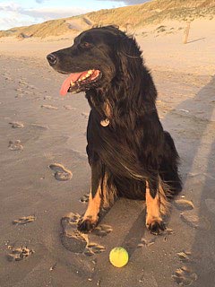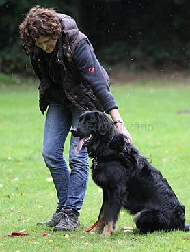 Carlos ist ein ganz souveräner Hund, den man überall mitnehmen kann. Im August war Frauchen mit ihm für ein paar Tage in GB. Da waren wir auf einem sehr vollen Markt und auch wenn das nicht seine Lieblingsbeschäftigung ist, war er froh, dabei zu sein und hat alles mit Fassung ertragen. An dem Tag bin ich bestimmt von 12-15 Leuten wegen der Rasse angesprochen worden. Alle waren von ihm sehr beeindruckt. Hovawarte sind in England nicht so bekannt. Carlos ist äußerst freundlich und zugänglich den meisten Hunden und Menschen gegenüber. Seit August steht auch das Damwild bei Frauchen im Garten - hinter einem Zaun! Carlos beobachtet sie ganz ruhig - es ist sehr schön anzusehen. Er ist auf jeden Fall Frauchens Lebenshund :))