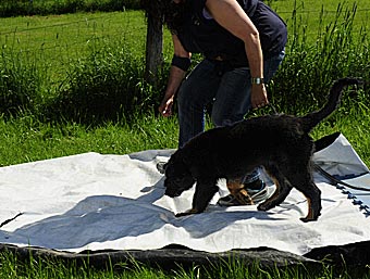 Diesmal wurde für die Welpen ein kleiner Parcours aufgebaut.