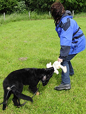 Die 4. Welpenspielstunde begann mit einem Beutespiel |