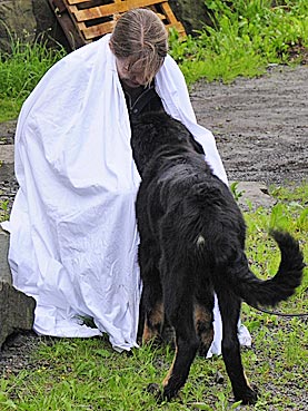 ... und unter das flatternde Tuch. |