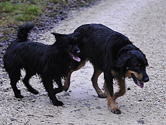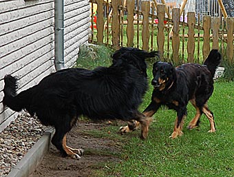 Am 12. Tag der Läufigkeit trafen sich die beiden dann im Vorgarten von Evas Tochter Daniela wieder. Lümmel und Carla waren sich sofort einig und es dauerte nicht lange, da hingen sie schon. |