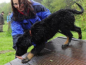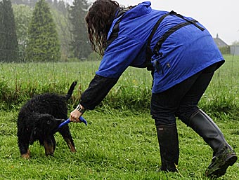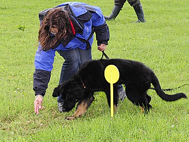 Die Welpenschule begann heute mit einer ersten kleinen Fährtenübung. |
