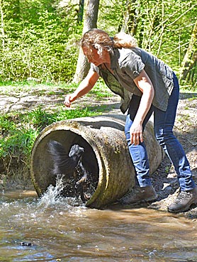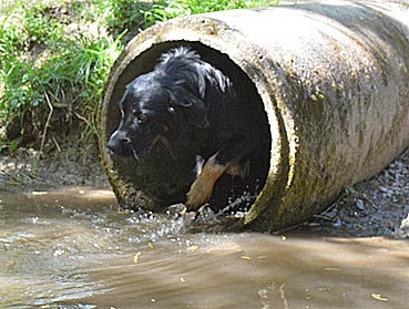 Cato durchquerte das Betonrohr ... ... und weil es so schön war, verschwand er gleich wieder im Rohr > |