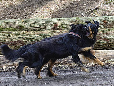 Außerdem sind die Knochen bei einem Junghund noch zu weich, so dass sie durch Tobereien mit den erwachsenen Hunden evtl. überlastet würde. Aber inzwischen ist Chili 8 Monate alt und nun gehen wir täglich mit allen drei Hunden gemeinsam spazieren.