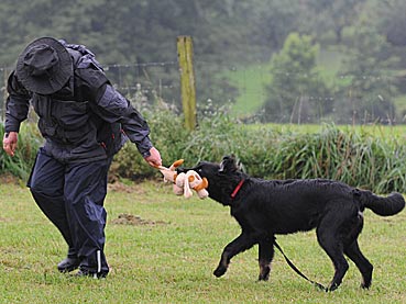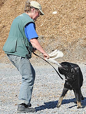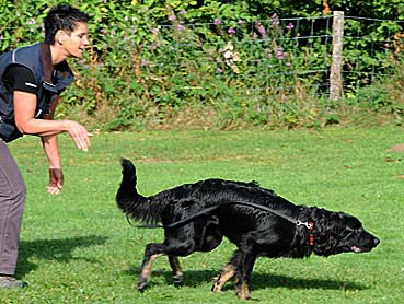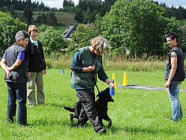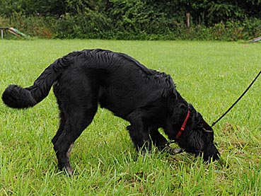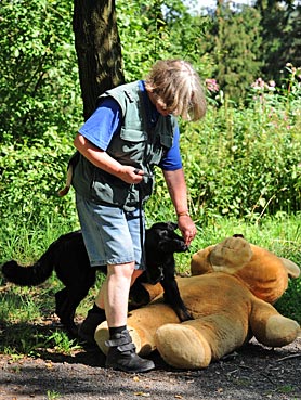 Die erste Junghundestunde begann mit dem Absuchen eines Fährtenquadrats. Chili ist 5 Monate alt |