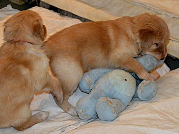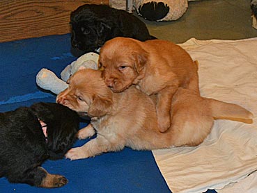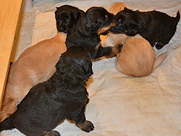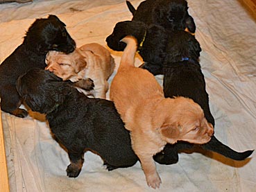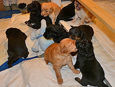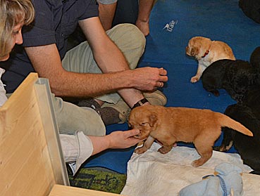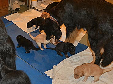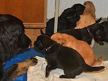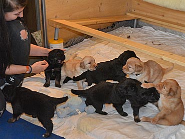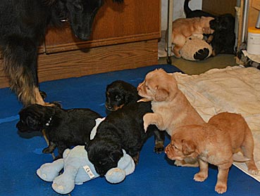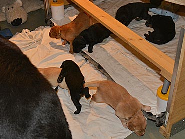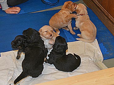 Wenn die Welpen die Wurfkiste verlassen, werden erst mal "wichtige Geschäfte" erledigt ;-)