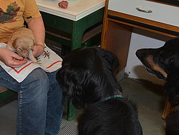 Sogar Argus, der sich normalerweise von den Welpen fern hält, |