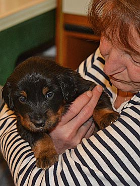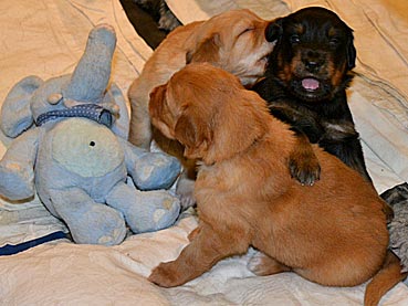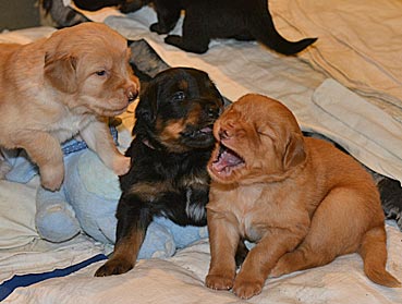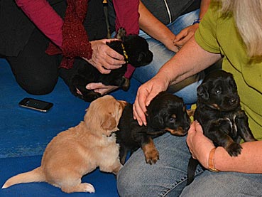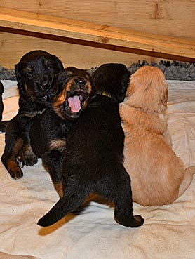 Heute sind die Welpen genau 3 Wochen alt geworden und es kamen die Familien von Dyke und Diva zum Welpen gucken.