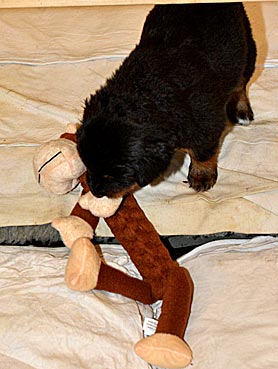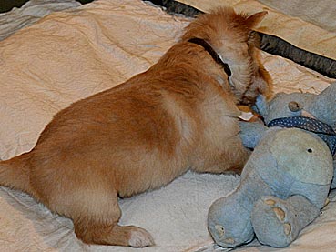 < Das neue Spielzeug wurde gleich untersucht ... ... und auch auf seine Tauglichkeit als Schlafunterlage getestet. |