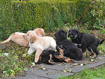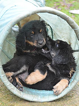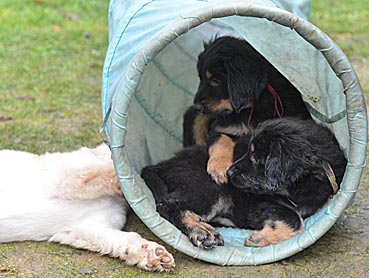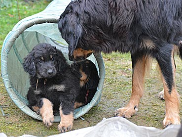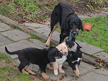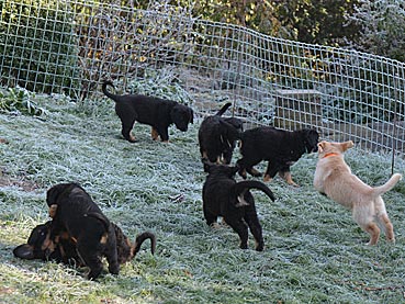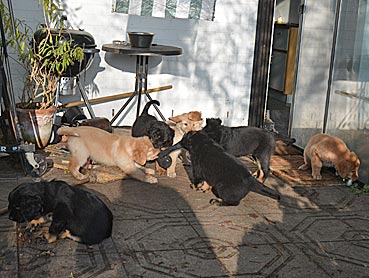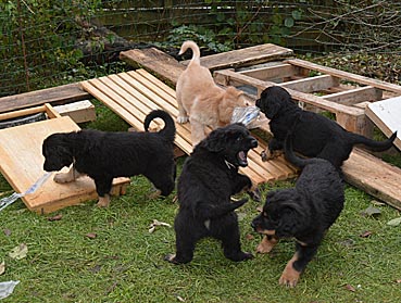 Gebiss und Ruten sind bei allen Welpen in Ordnung und bei allen Rüden sind die Hoden vorhanden.