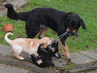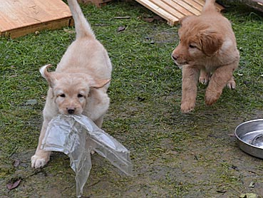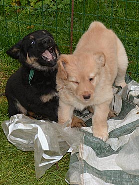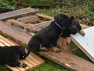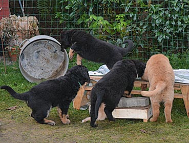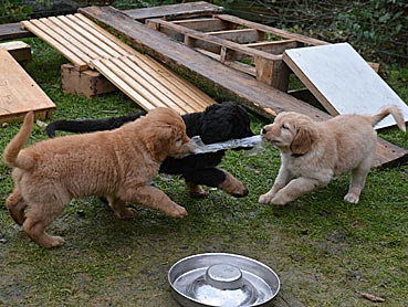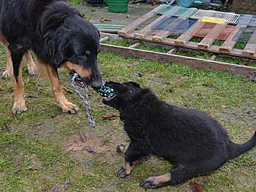 Alle Welpen gingen auf das Beutespiel ein und trugen den Beutelappen.
