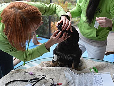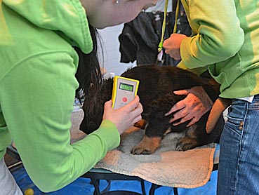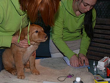 Delphi (bisher braun, jetzt rotes Halsband) - Temperaturkontrolle und Blut abnehmen für die DNA-Datenbank des RZV
