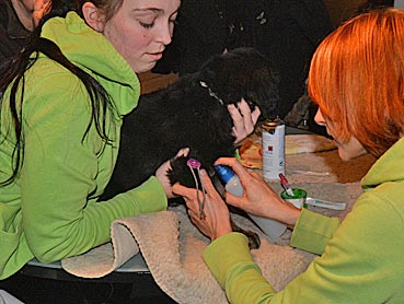 Daphne (rosa) - Augenkontrolle und Desinfizieren vor dem Chipen
