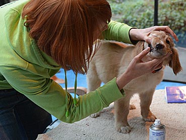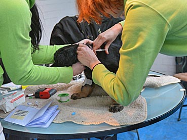 Dario (lila Halsband) - Kontrolle des Gebissschluss und setzen des Chips