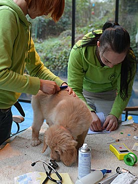 Alle Welpen haben die Prozedur gut überstanden. Einige haben protestiert, aber keiner war beeindruckt oder ängstlich.