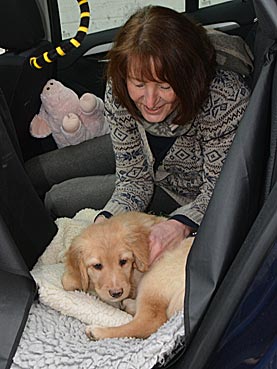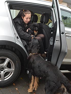 Auch Distel hat die Fahrt gut überstanden. Sie hat nur 2 mal ein bisschen gejammert, ansonsten war sie brav und hat sich an Frauchen gekuschelt.