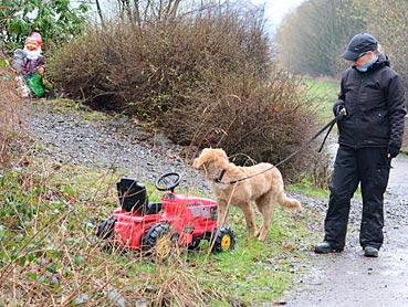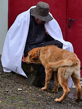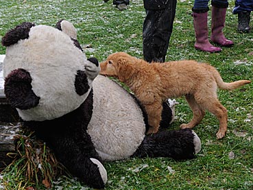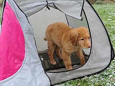 Abrufen in ein Versteck Frauchen zeigt Dante die Beute, rennt weg und versteckt sich. |