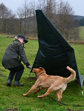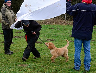 Beutespiel mit Frauchen und Laufen unter dem Flattertuch hindurch.