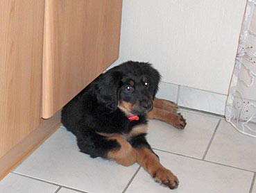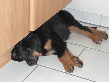 Dina mit 10 Wochen unter der Spüle. Mittendrin statt nur dabei ;-)))))