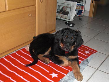 links: Dina mit 17 Wochen, sie versucht unser Bett zu erobern ;-)
