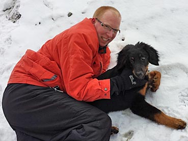 Dina zum ersten Mal im Schnee in Winterberg. Wenn es auch nicht viel Schnee war, Dina fand es zum toben klasse. |