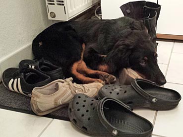 Dina zuhause mit 20 Wochen auf ihrem Lieblingsplatz ---> dem Schuhberg
